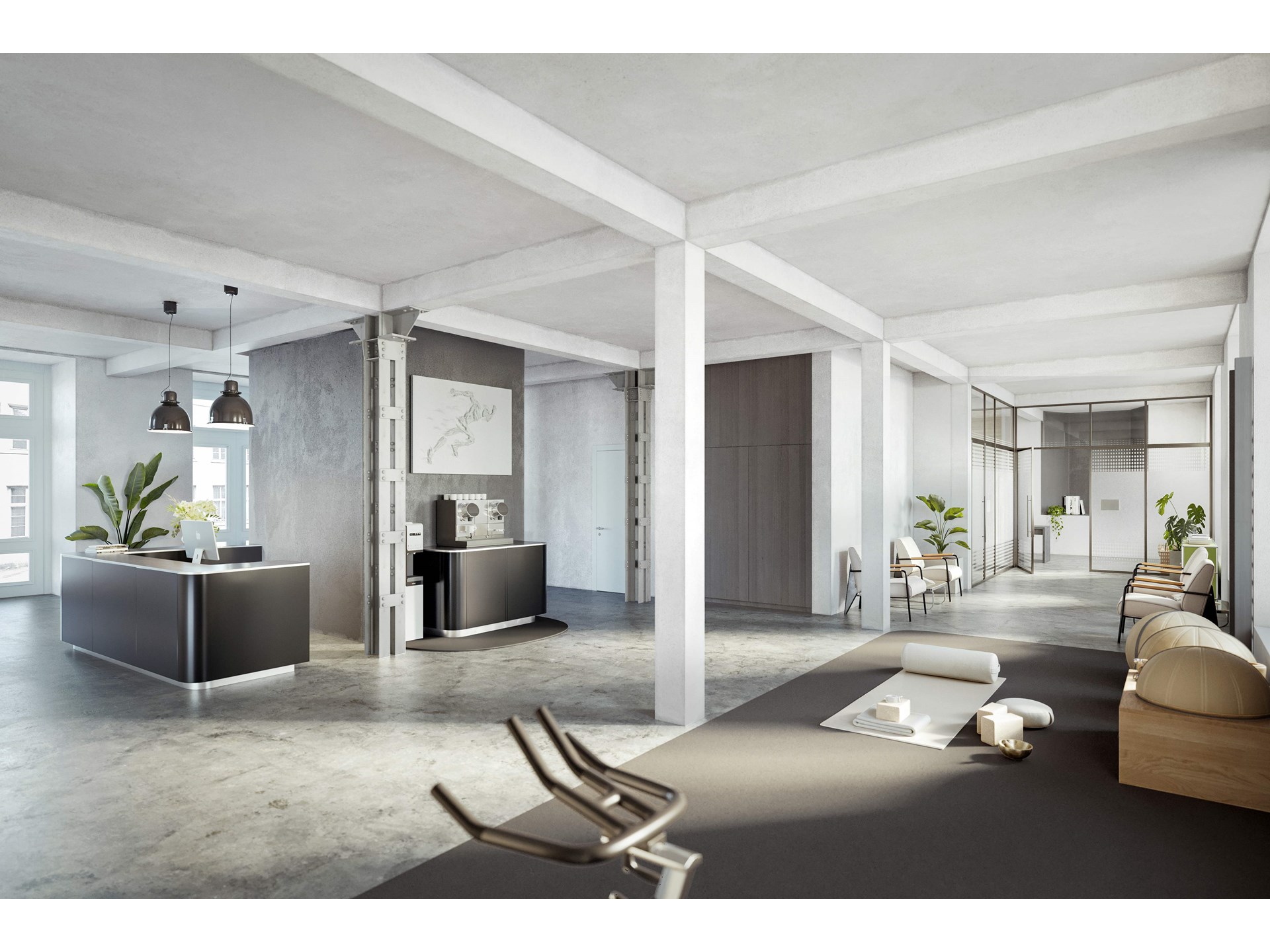 Ob Physiotherapie-Praxis, Architekturbüro, Kreativatelier oder kleine Werkstatt – diese Fläche bietet den idealen Rahmen für unterschiedlichste Konzepte.
