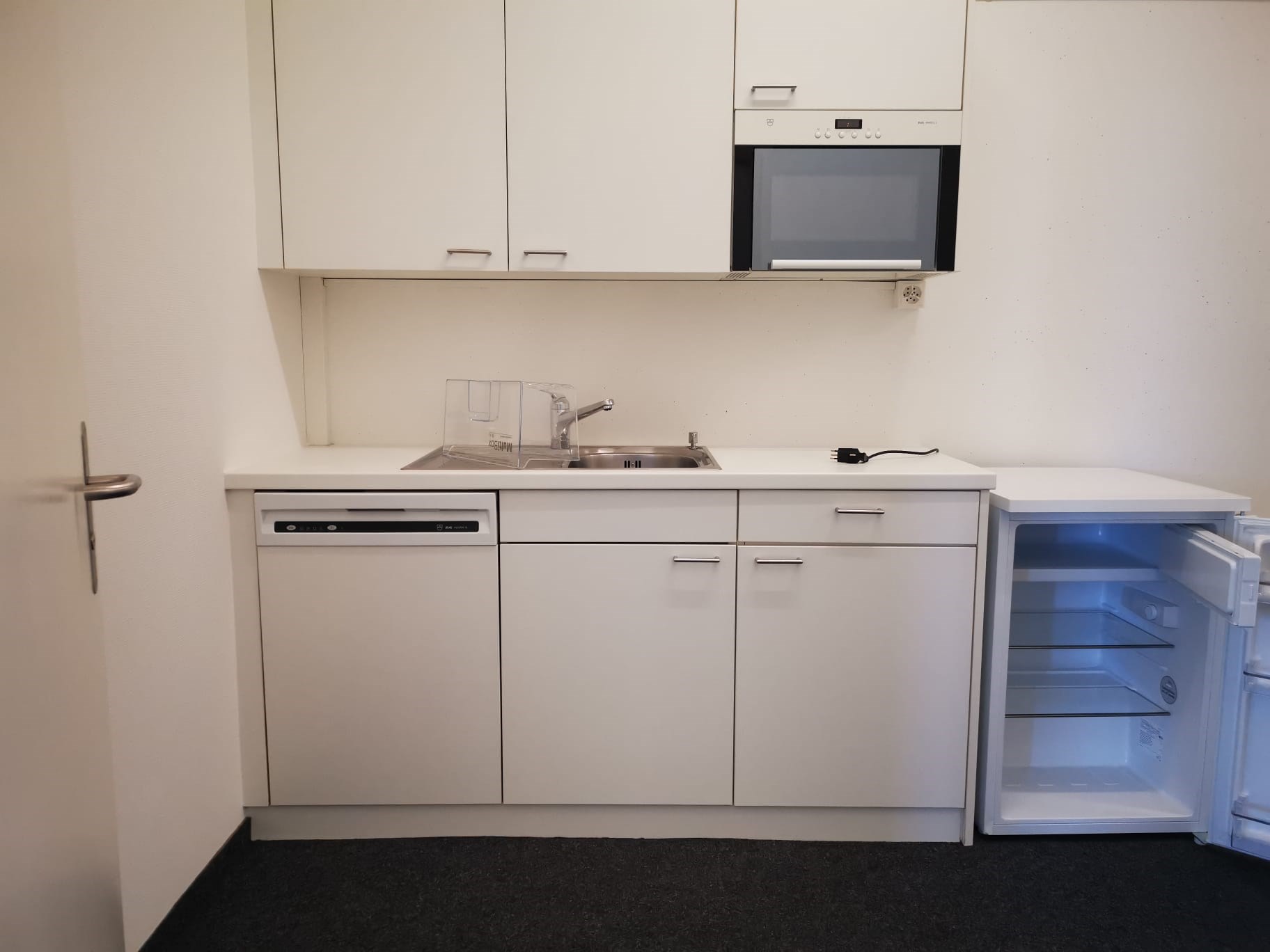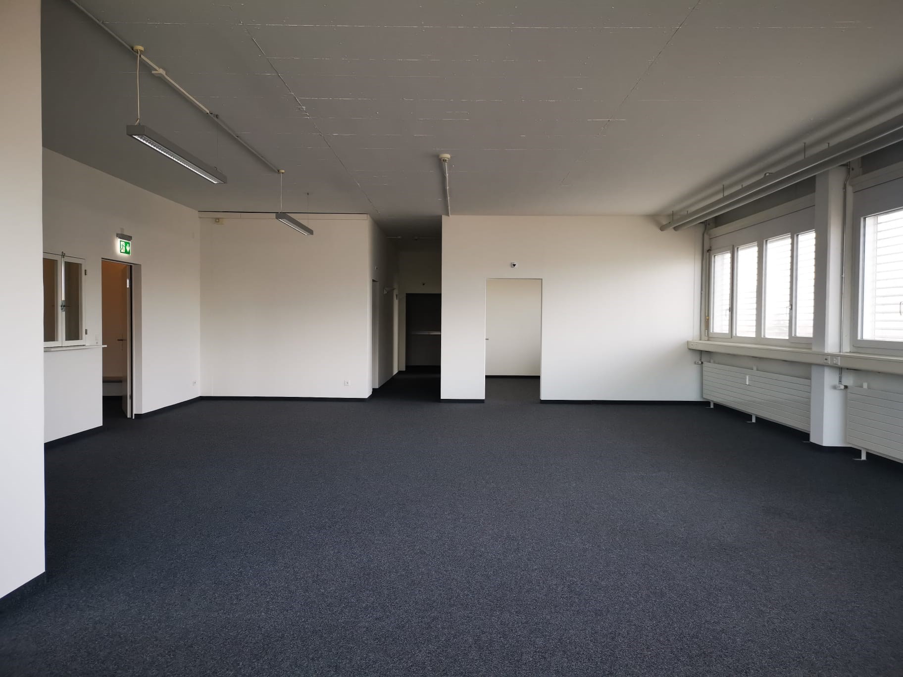 Die Bürofläche ist funktional und durchdacht aufgeteilt in einen Grossraumbereich, mehrere abgeschlossene Büros sowie ein separates Sitzungszimmer. Eine Einbauküche, ein kleiner Serverraum, bestehende Beleuchtung sowie Teppichboden sind bereits vorhanden. Ein Personenlift sorgt für komfortablen Zugang, der repräsentative Eingangsbereich unterstreicht den professionellen Auftritt. Parkplätze stehen ebenfalls zur Verfügung.